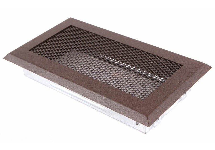 Kratka kominkowa 10x20cm - kolor: brąz brokatowy Kratka kominkowa – przeznaczona do nawiewu ciepłego powietrza w sposób grawitacyjny lub wymuszony, a także do nawiewu lub wywiewu powietrza wentylacyjnego. Wykonana jest z elementów stalowych odpowiednio przygotowanych w procesie ...