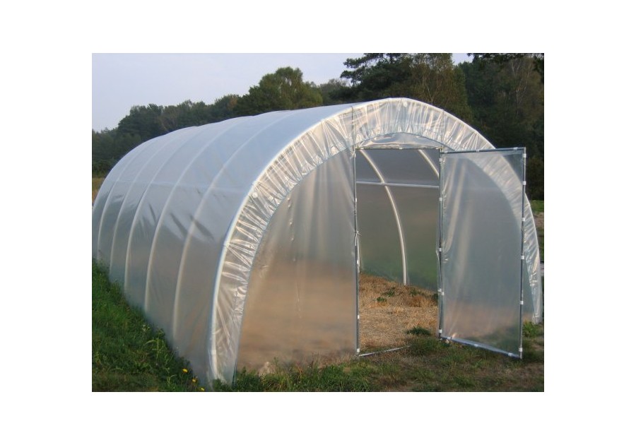 Przedstawione tunele foliowe bazują na konstrukcji z wysokociśnieniowych białych rur z PCW (PCV) o średnicy 32 mm oraz stabilizowanej przeciw promieniowaniu UV, 5-sezonowej folii ogrodniczej wyprodukowanej w technologii COEX-3.