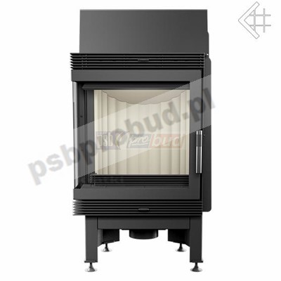 Szyba boczna dzielona - wkład kominkowy z dwoma szybami zestawionymi ze sobą pod kątem prostym (szyby łączone bez szprosa).Komora spalania wyłożona acumotte.