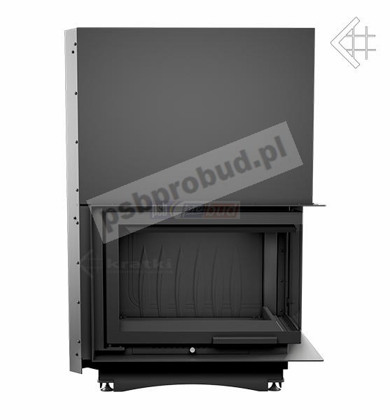 Zaletą wkładu jest korpus wykonany z żeliwa szarego klasy 200, o minimalnej grubości ścianki 8 mm, front pieca ze stali kotłowej. Gęsto rozmieszczone radiatory, zwiększające powierzchnię wkładu,czyli obszar, którym oddawane jest ciepło do otoczenia oraz deflektor, który wydłuża drogę spalin. W drzwiczkach zamontowana jest ceramika żaroodporna wytrzymująca temperaturę do 800oC. Dzięki podnoszonym i opuszczanym drzwiczkom łatwo załadujemy żądaną ilość drewna a mechanizm umożliwiający boczne otwarcie drzwiczek ułatwi czyszczenie szyby. System unoszenia drzwi został zbudowany w oparciu o przeciwciężar z linką stalową pracujący na łożyskowanym bloczku w prowadnicach, co umożliwia cichą i bezawaryjną pracę. Szyba boczna dzielona - wkład kominkowy z dwoma szybami zestawionymi ze sobą pod kątem prostym (szyby łączone bez szprosa). Regulacja dopływu powietrza poprzez popielnik. Gwarancja 5 lat.