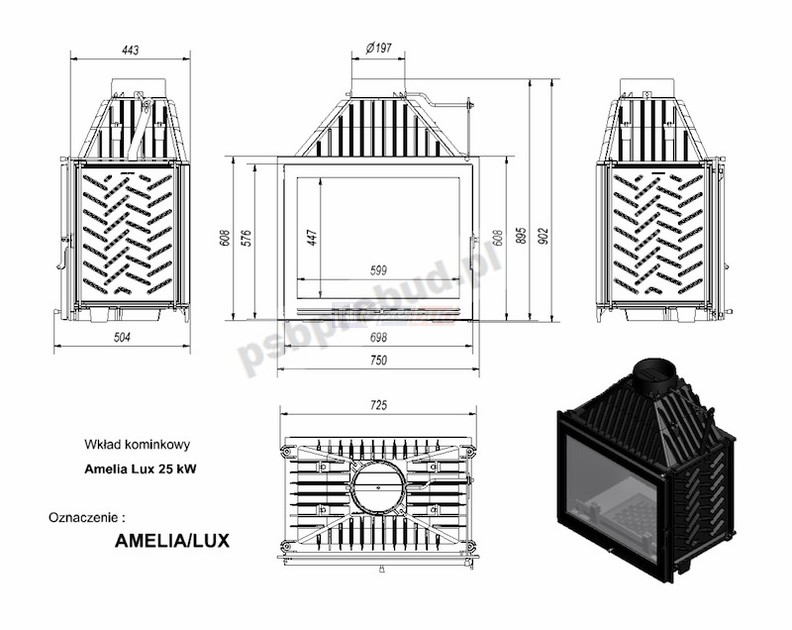 Wkład kominkowy AMELIA LUX 25 + dolot